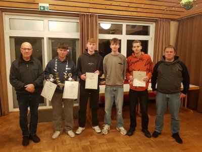 Angelkönig bei den Jugendlichen wurde Louis Glöde aus Lunden (39335) Punkten, gefolgt von Christian Tutlys aus Lunden mit (6580), Jannik Uhse aus Lunden (6135), Elias Tutlys (5790), Oke Mahmens und Felix Oldehus.